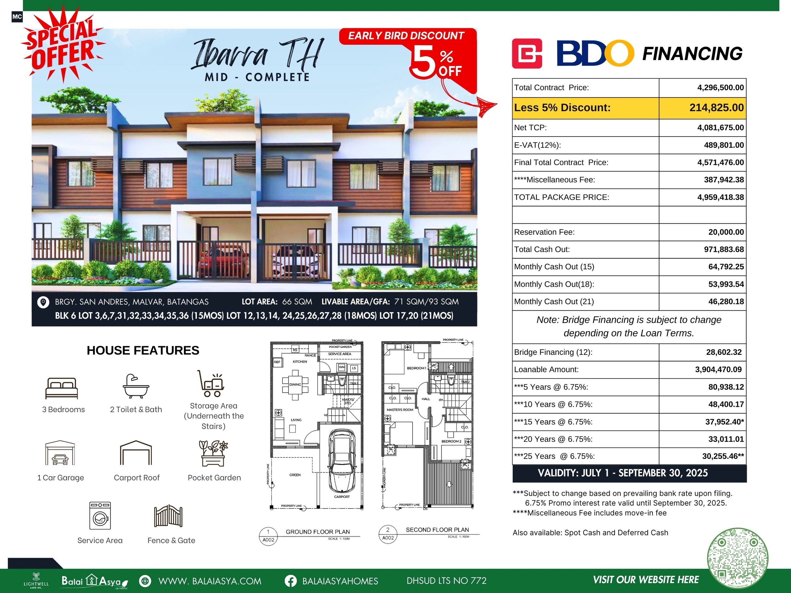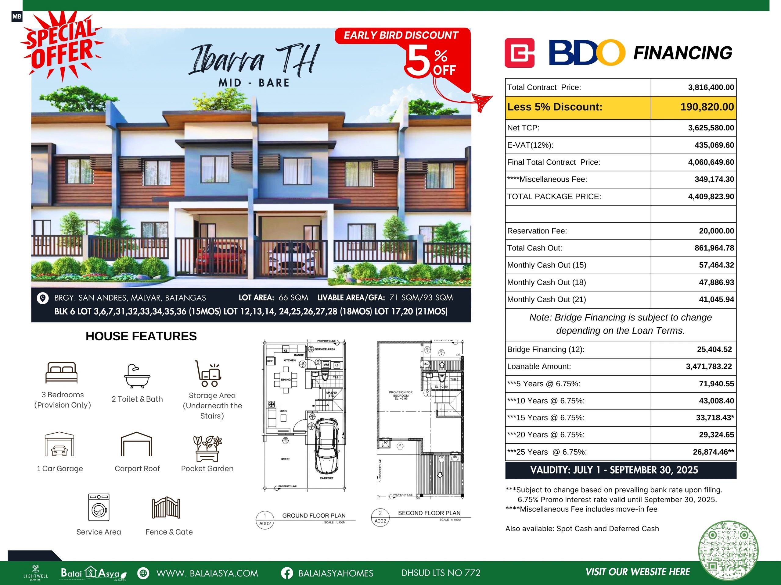 House Features: 3 Bedrooms, 2 Toilet & Bath, Fence & Gate, Landscape, Service Area, Carport Roof and Carport
